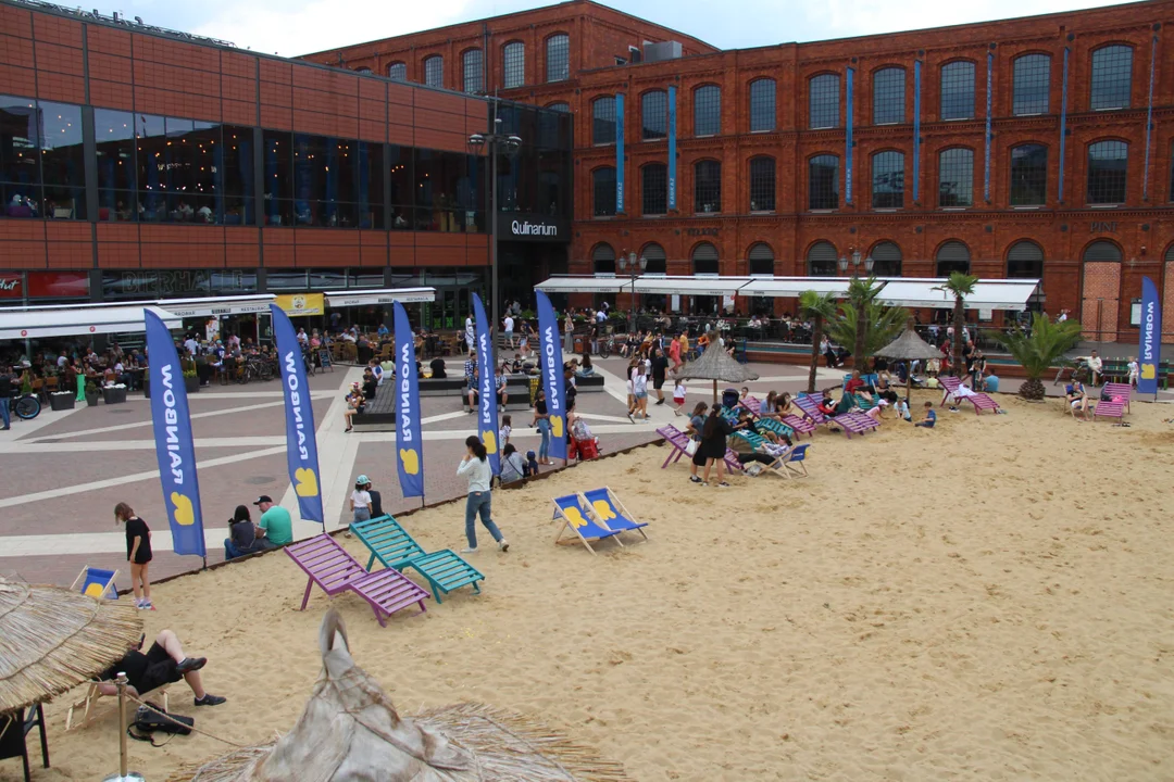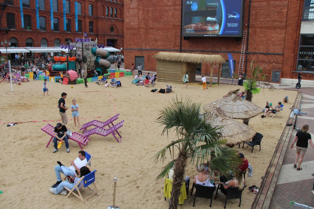 Plaża na rynku w Manufakturze będzie dostępna dla odwiedzjących do 3 września.