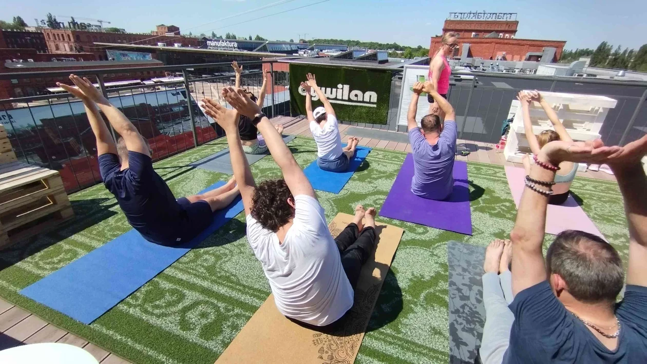 Żeby wziąć udział w zajęciach jogi na dachu, wystarczy zarezerwować miejsce wysyłając maila na adres info@yogazoneonline.com, a po potwierdzeniu rezerwacji przez prowadzącą przybyć na jogę w dobrym humorze i w wygodnym ubraniu. Każdy uczestnik musi mieć swoją matę. W zajęciach może wziąć udział maksymalnie 10 osób, odbywają się one w każdą sobotę wakacji o godz. 10.Na dach Muzeum Fabryki można wejść z bramy kina Cinema City klatką schodową na 3. piętro lub wjechać windą na 2. piętro i wejść przez siedzibę Muzeum Fabryki.