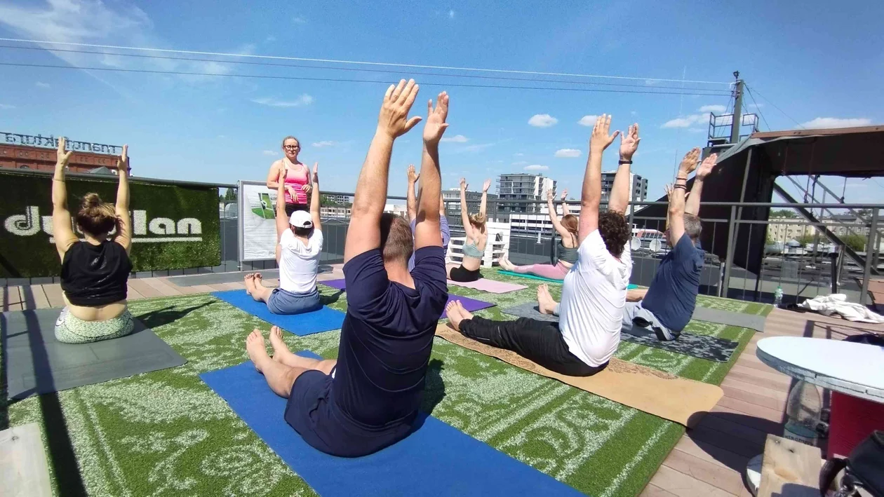 Kiedy ktoś poczuł się zmęczony, mógł odpocząć w pozycji dziecka. Na koniec godzinnych zajęć wszyscy relaksowali się w ciszy, leżąc wygodnie na matach.Zajęcia jogi są przeznaczone dla każdego, bez względu na stopień zaawansowania. Ćwiczącymi opiekuje się Joanna Skoraczyńska, dyplomowana instruktorka hatha jogi z piętnastoletnim stażem nauczycielskim.