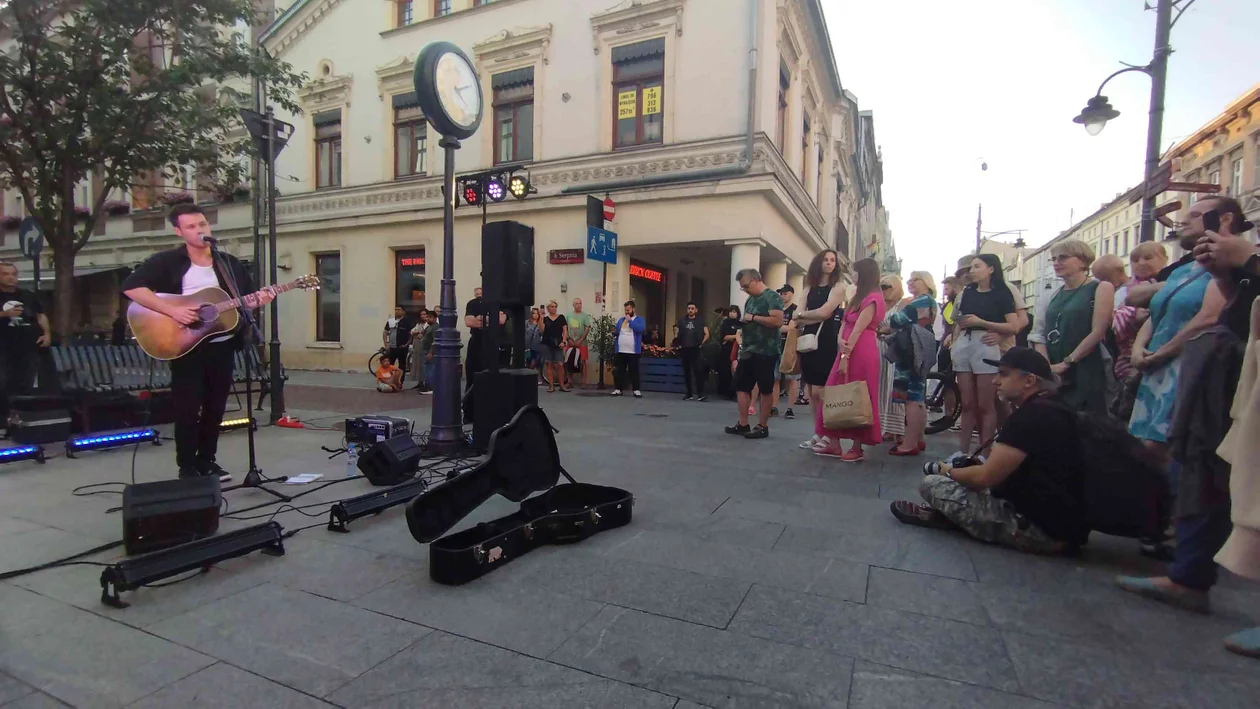 Muzyk szybko nawiązał kontakt z publicznością, a wszystko dzięki bezpośredniości i melodyjnym piosenkom, które śpiewał. Zgromadzeni widzowie szybko zaczęli bujać się w rytm muzyki. Od czasu do czasu ktoś wrzucił monetę lub banknot do stojącego przed artystą otwartego futerału na gitarę.