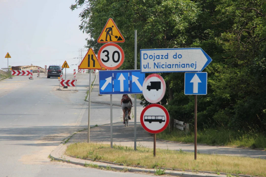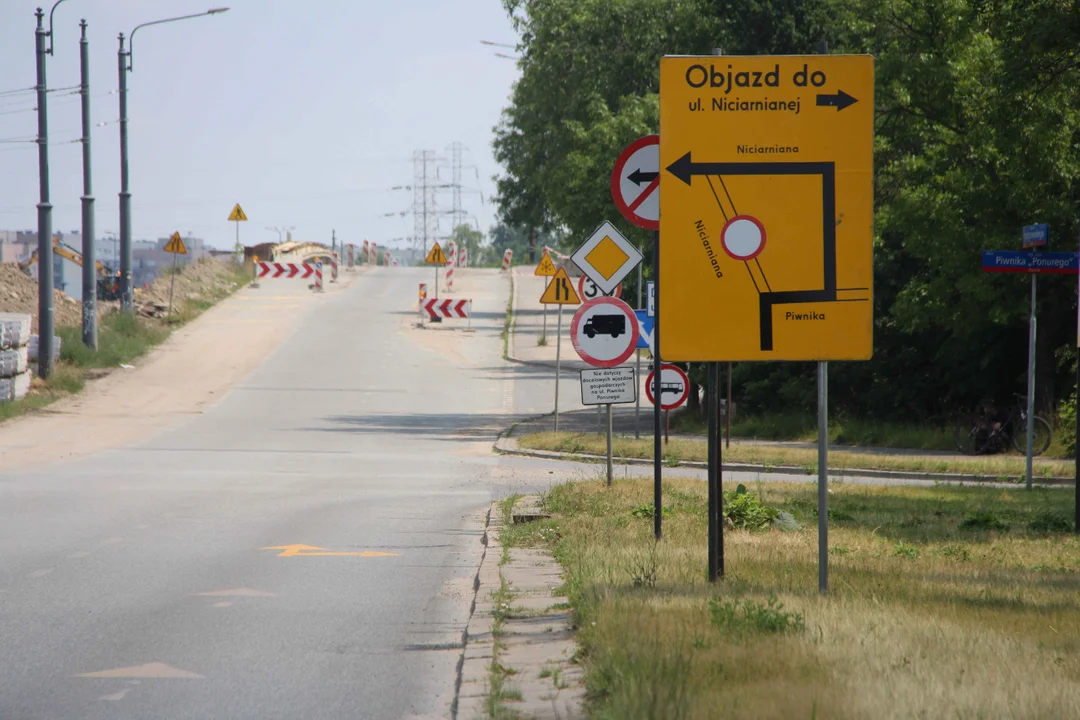 Zdarzenie miało miejsce na wysokości wjazdu na wiadukt ul. Przybyszewskiego, od strony skrzyżowania z ul. Nurta-Kaszyńskiego. Obecna organizacja ruchu to zwężenie obu pasów ruchu i pozostawienie tylko środkowego, który jest bez zmian przejezdny. Na nagraniu widzimy jak kierowca peugeota w ostatniej chwili omija znak drogowy, wjeżdża na środkowy pas, po czym traci panowanie nad kierownicą.W poniedziałkowym zdarzeniu nikt nie został ranny. Choć na co dzień przylegającym do jezdni chodnikiem chodzi sporo pieszych, w momencie wypadku nikogo nie było.