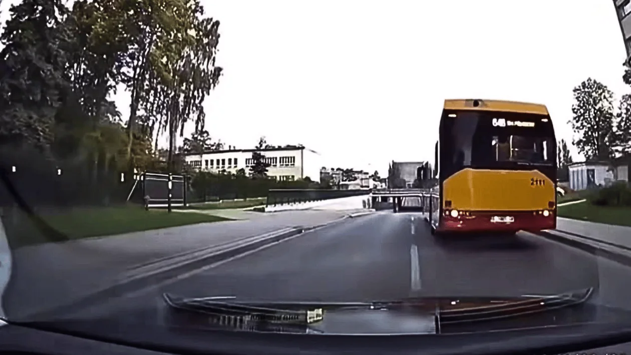 Na nagraniu z wideorejestratora widzimy także, jak kierowca, który chce wyprzedzić autobus nie zdąża ukończyć manewru wyprzedzania zgodnie z przepisami.