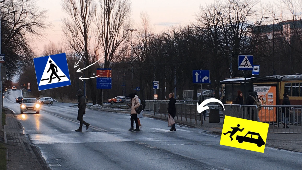Z daleka, piesi oczekujący na wejście na pasy, wyglądają dla kierowców jakby stali na przystanku, a nie czekali na pierwszeństwo.
