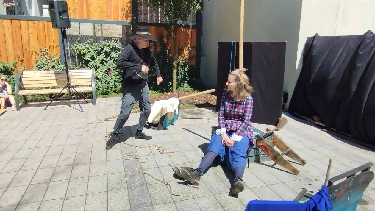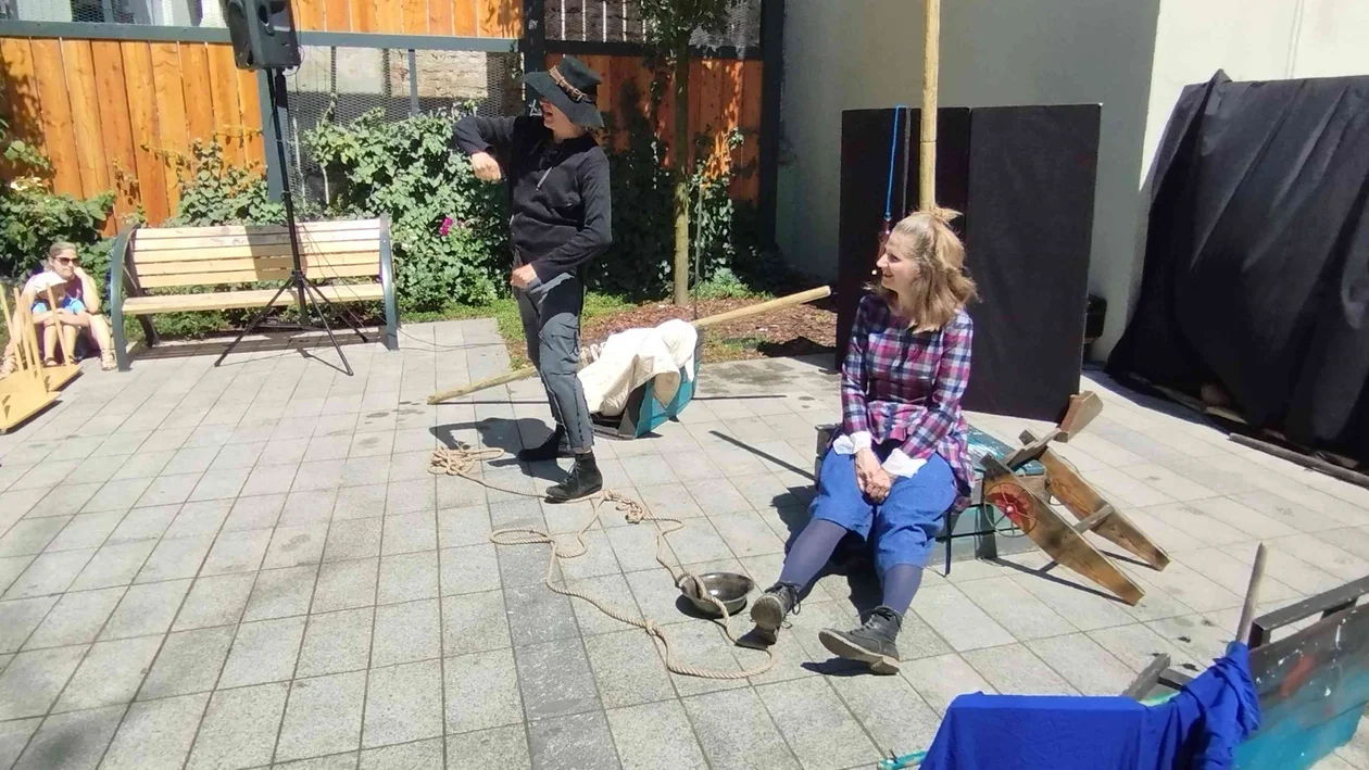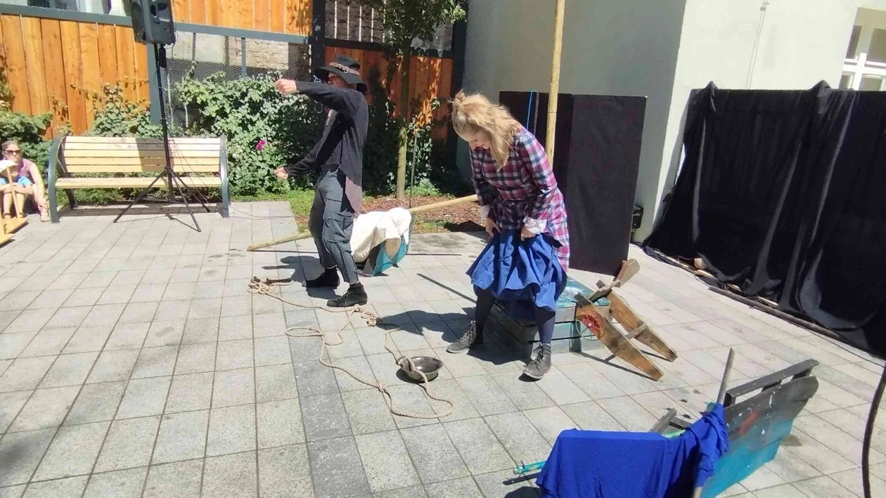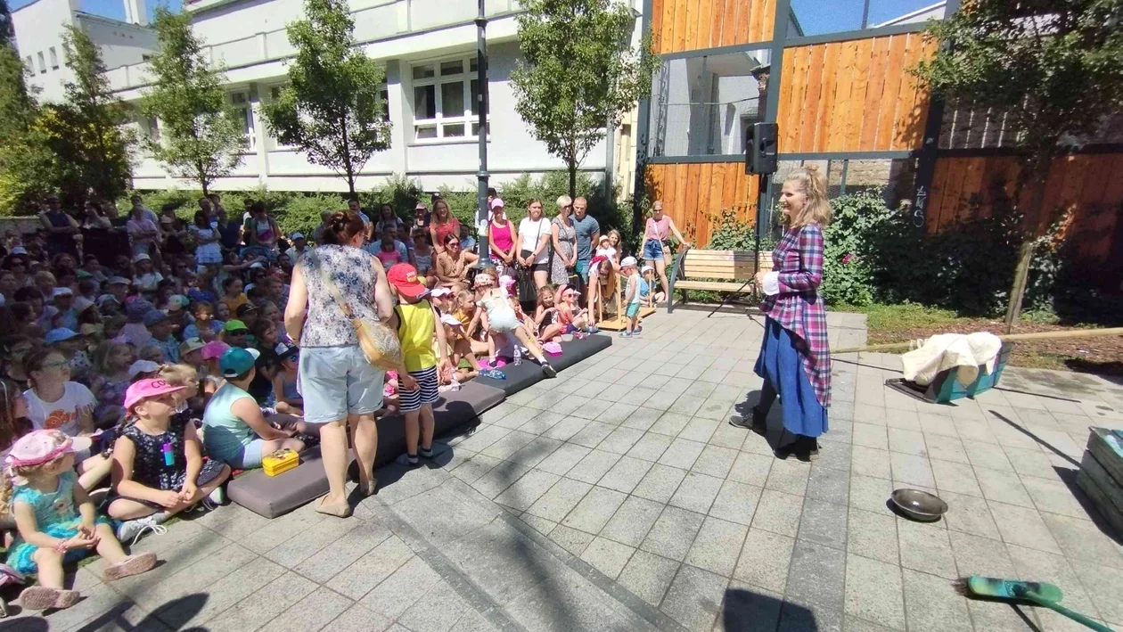 Publiczność dopisała licznie. W znakomitej większości stanowiły ją dzieci w wieku przedszkolnym, choć nie brakowało też maluchów w wózkach lub w objęciach rodziców. Ci ostatni otoczyli młodocianych widzów szczelnym kręgiem i pilnowali, żeby ich dzieci dobrze się bawiły. Zresztą nie musieli się o to wcale martwić, ponieważ historia przedstawiona przez dwójkę aktorów była niezwykle ciekawa i wciągająca.