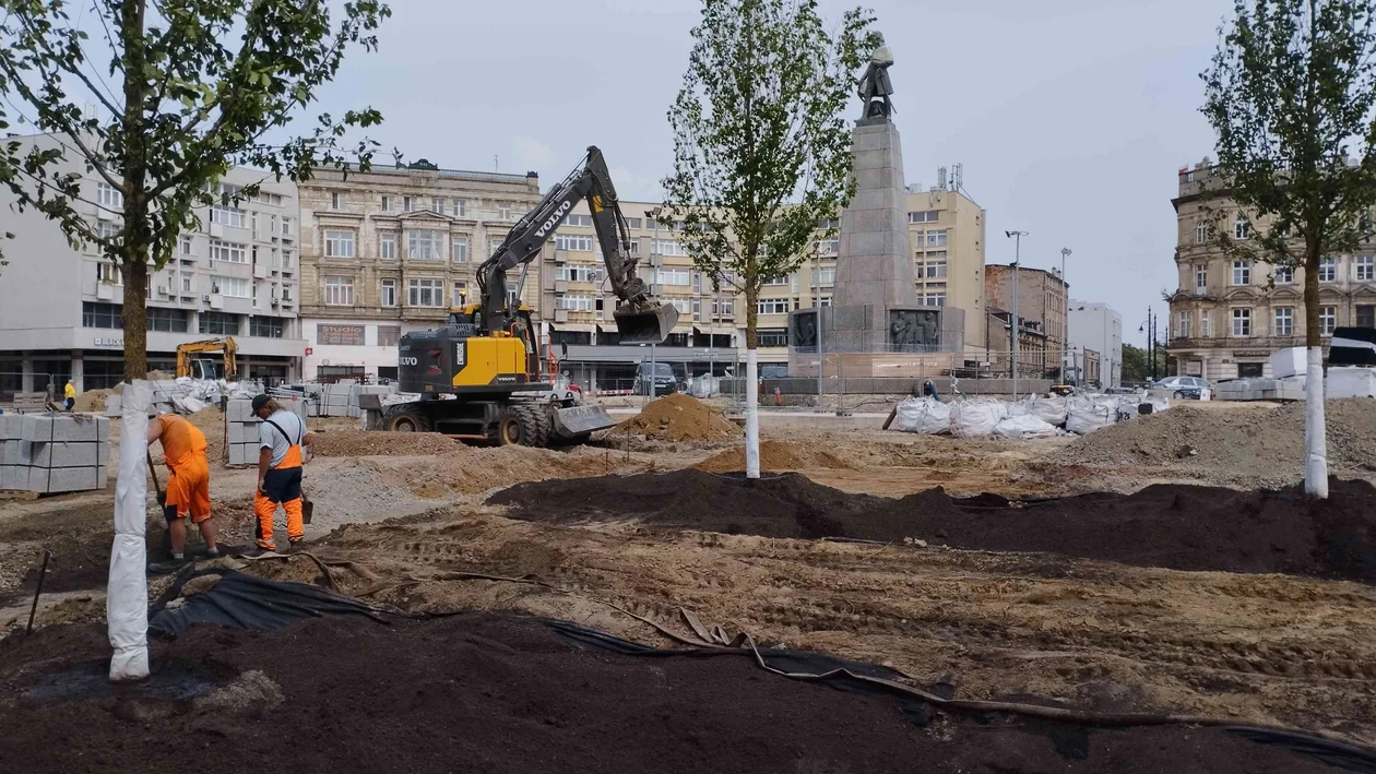 Na pl. Wolności praca wre. Robotnicy układają betonową nawierzchnię wokół posadzonych jakiś czas temu drzew. Usunięta została też większość kolizji z podziemną infrastrukturą wodociągowo-kanalizacyjną.