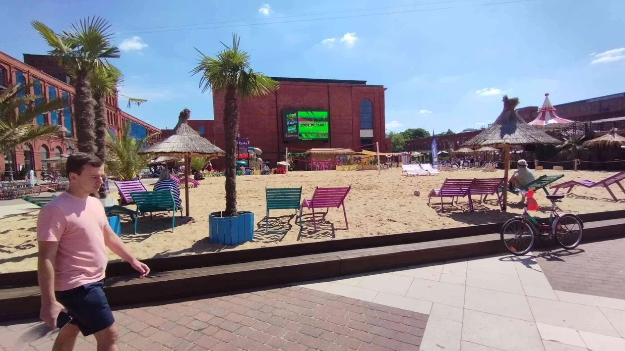 Autor: Karolina Brózda | Opis: Wakacyjną atmosferę podkreśla plaża na rynku Manufaktury.