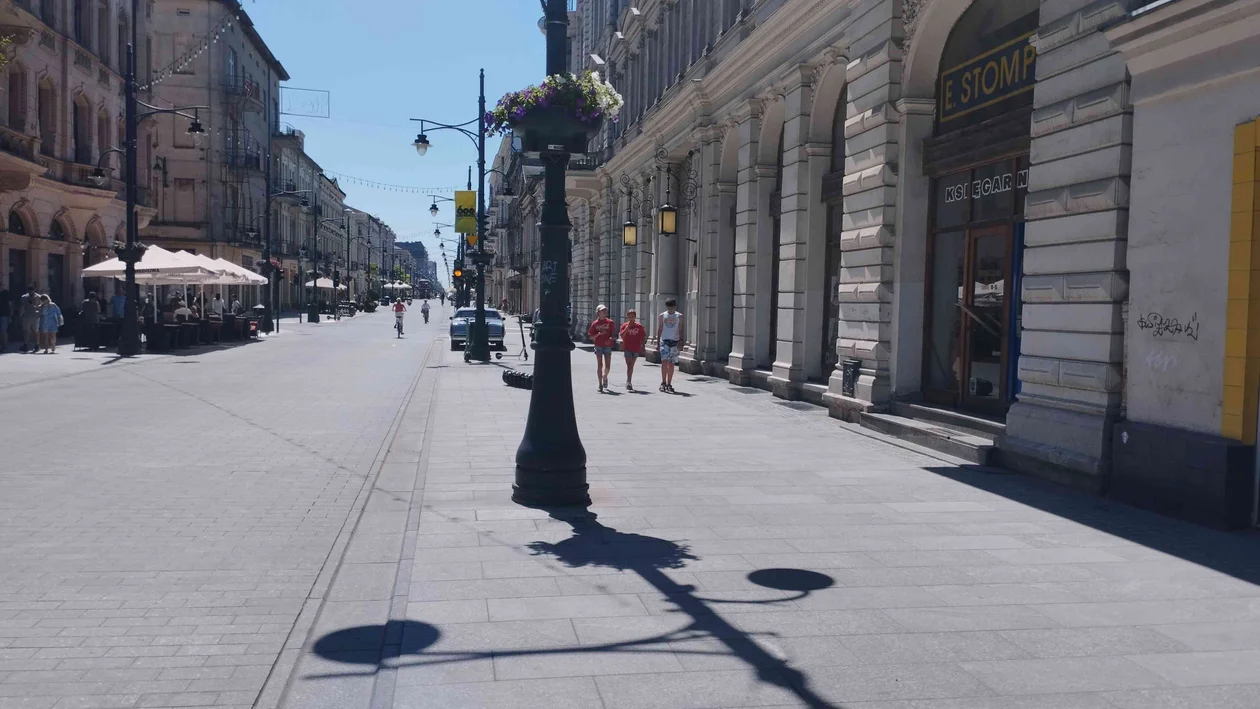 na ul. Piotrkowskiej. Mocno nagrzane od instensywnego słońca chodniki nie sprzyjały jednak dłuższym wędrówkom, więc część osób kryła się pod parasolami stolików w restauracyjnych ogródkach. Co chwilę deptakiem